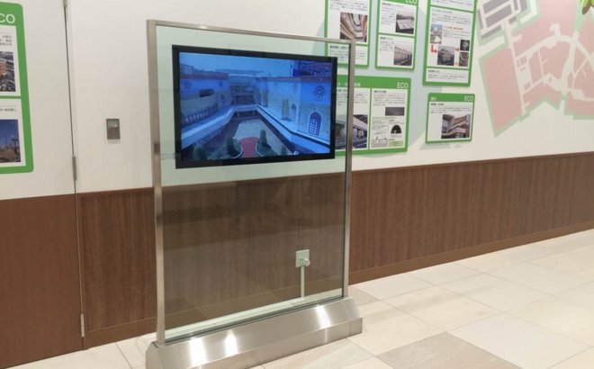 セブンパーク アリオ柏様 AGC様のinfoverre®を採用したオリジナル筺体とデジアピを組み合わせて利用。 |